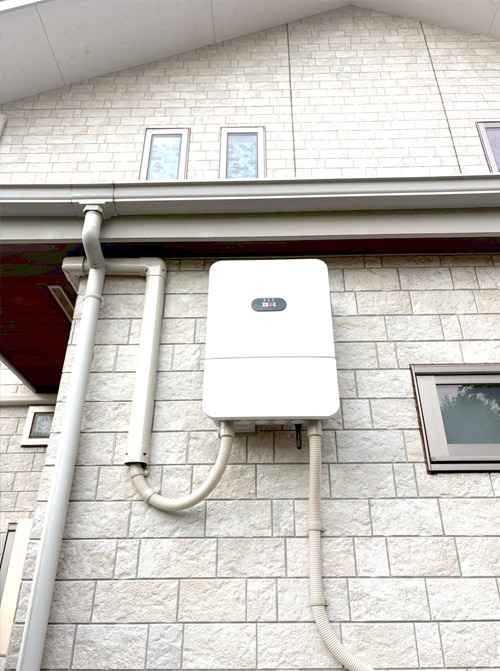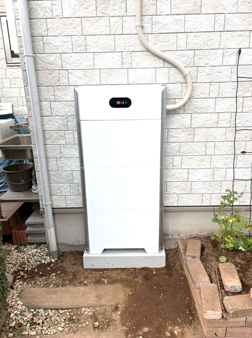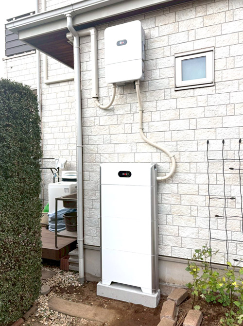 そして、蓄電池は壁掛けユニットを使用し外壁に固定する形で設置を行いました。